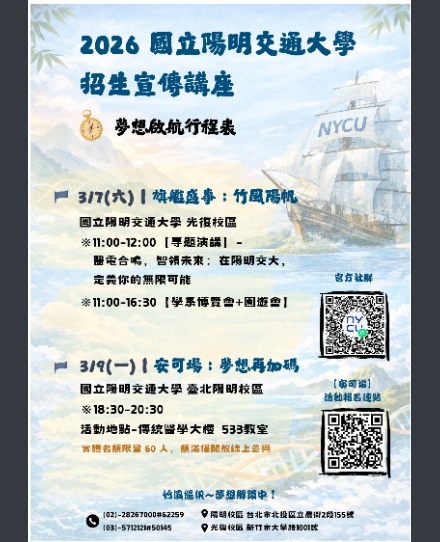 四、如有報名或活動相關疑問,請洽招生策略中心譚小姐,電話:03-5712121分機:50145。