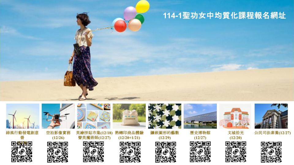 (一) 週間課程:「綠風行動:發電創意營」、英繪拼貼市集 Daily English、空拍影像實務教學計畫、鑲嵌圖形的藝數、熱轉印商品體驗。懇請貴校核以參加營隊學生公假。