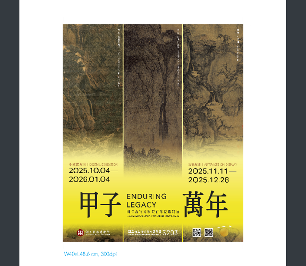 轉知:國立故宮博物院「甲子萬年:國立故宮博物院百年院慶特展」活動Post author:nnkiehtn007Post published:2025-10-14Post category:行政公告國立故宮博物院百年院慶,故宮推出最新出版《故宮大事錄要:民國89至113年》、多檔重磅展覽與跨界文創商品等多元活動。南北院更將在院慶月同步開展「甲子萬年」特展,更將借展日本、法國的經典之作,打造文化共融的藝文盛事。南部院區特別同時展出3件舉世知名北宋巨碑式山水畫至寶-范寬〈谿山行旅圖〉、郭熙〈早春圖〉、李唐〈萬壑松風圖〉,歡迎前往參觀。展出時間:114年11月11日至12月28日。甲子萬年下載 Post Views: 8Read more articles上一篇文章大葉大學115學年度研究所碩、博士班甄試招生資訊下一篇文章轉知:2026年第34屆台北國際書展「寒假趣書展」活動訊息