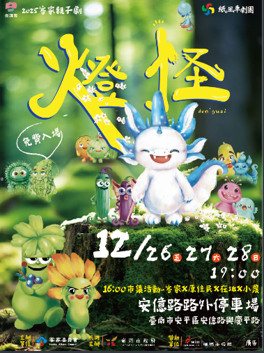 轉知:2025客家親子劇《燈怪》臺南場」活動Post author:nnkiehtn031Post published:2025-11-25Post category:行政公告一、旨揭活動資訊如下:(一)時間:114年12月26日(星期五)、27日(星期六)及28日(星期日),每日下午7時,共3場次,免費入場。(二)地點:安億路路外停車場(臺南市安平區安億路與慶平路)。(三)備註:市集活動每日下午4時起至9時。 Post Views: 5Read more articles上一篇文章轉知:「114年人權影展月」活動下一篇文章轉知:「2026全國兒少陶藝獎」徵件資訊