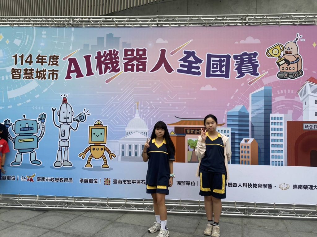 賀!本校國中部703林○歆、707陳○之參加「114年度智慧城市-AI機器人全國賽」榮獲海洋守護國中組佳作和女力科技特別獎!Post author:nnkiehtn052Post published:2025-12-02Post category:榮譽榜本校國中部703林○歆、707陳○之參加「114年度智慧城市-AI機器人全國賽」榮獲海洋守護國中組佳作和女力科技特別獎!恭喜以上獲獎同學感謝包芷寧老師指導 Post Views: 12Read more articles上一篇文章賀!國中部參加114年公私立國中數學競賽榮獲佳績