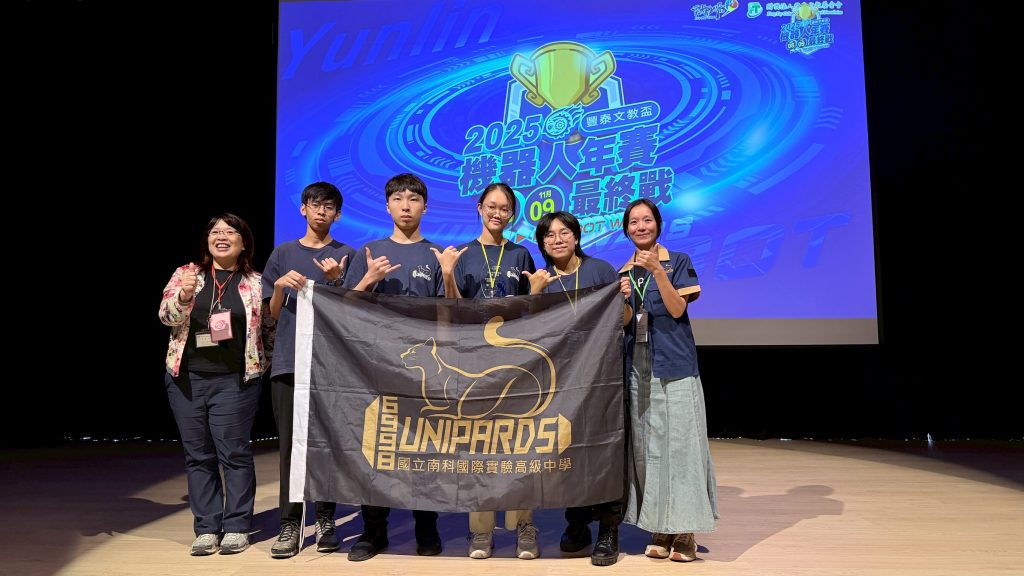 賀!本校高中部FRC隊員212陳○岑、214李○軒、G11陳○宇、G10薛○蓁參加「2025豐泰文教盃機器人年賽」榮獲全國高中職組創意表達第二名!Post author:nnkiehtn052Post published:2025-11-10Post category:榮譽榜本校高中部FRC隊員212陳○岑、214李○軒、G11陳○宇、G10薛○蓁參加「2025豐泰文教盃機器人年賽」榮獲全國高中職組創意表達第二名!恭喜以上獲獎同學感謝蔡汶鴻老師、劉昀姍老師、陳建融教練指導 Post Views: 11Read more articles上一篇文章賀!高中部參加114年高中物理動手學競賽榮獲佳績