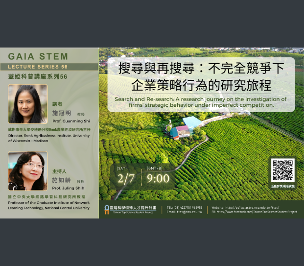國立中央大學線上講座:《蓋婭科普講座系列 56》—— 「搜尋與再搜尋:不完全競爭下企業策略行為的研究旅程」