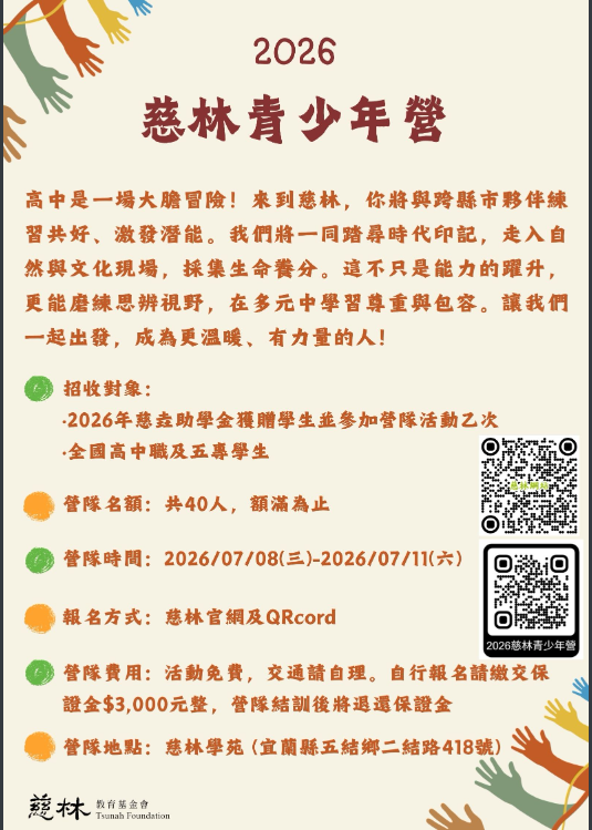 四、敬請 貴校鼓勵同學踴躍報名營隊,一同推動慈悲喜捨的社會風氣,促進社會進步。