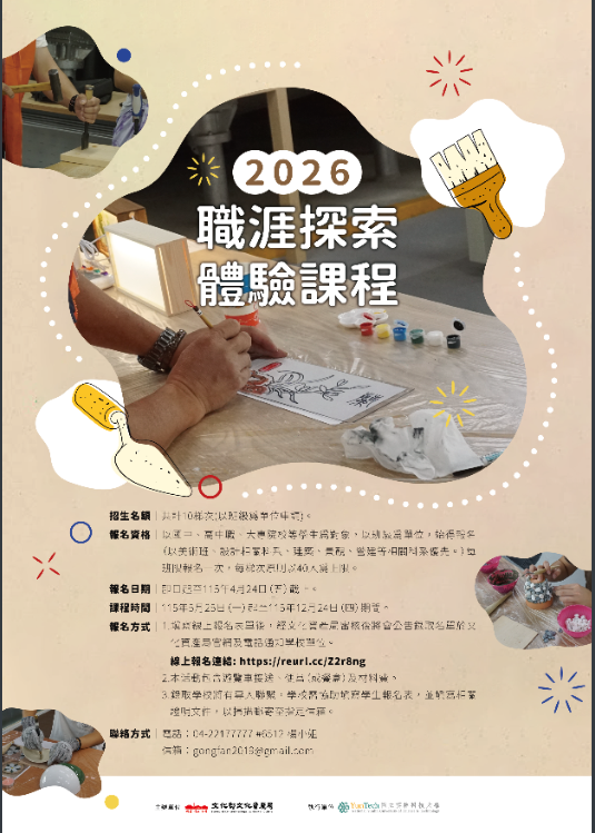 文化部文化資產局辦理文資傳匠工坊「2026職涯探索體驗課程」