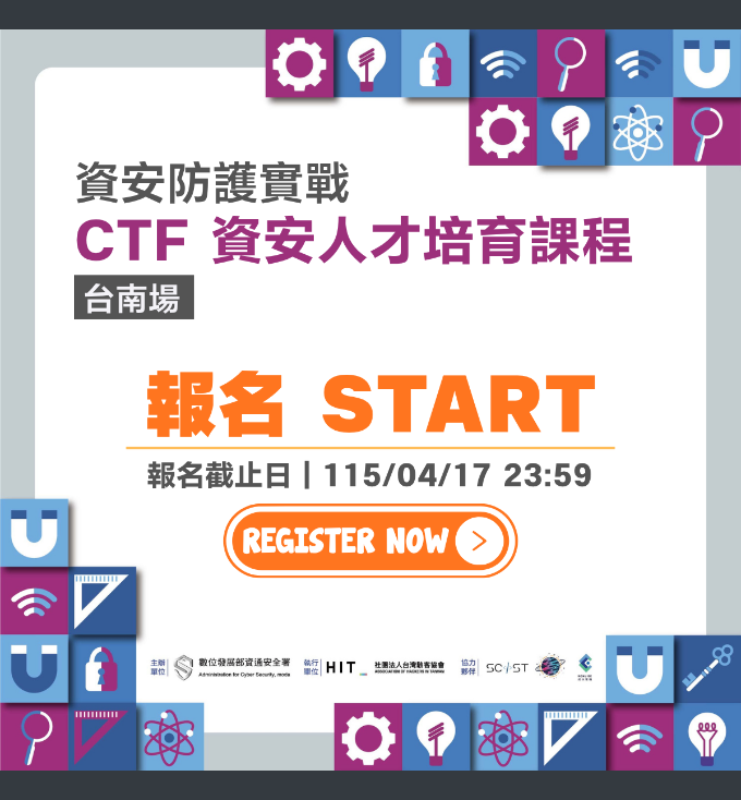一、為協力推動國內資安搶旗攻防賽(Capture The Flag,CTF)賽事文化,擴大吸引在學學生跨入資安攻防領域,提升我國資安實戰人才能量,本署規劃辦理旨揭資安人才培訓課程。