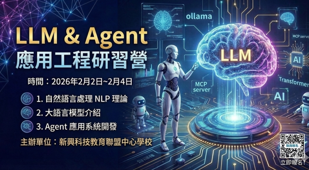 言處理NLP理論、大語言模型介紹及Agent應用系統開發之基礎與應用教學,協助提升新興科技教育能量,相關資訊如