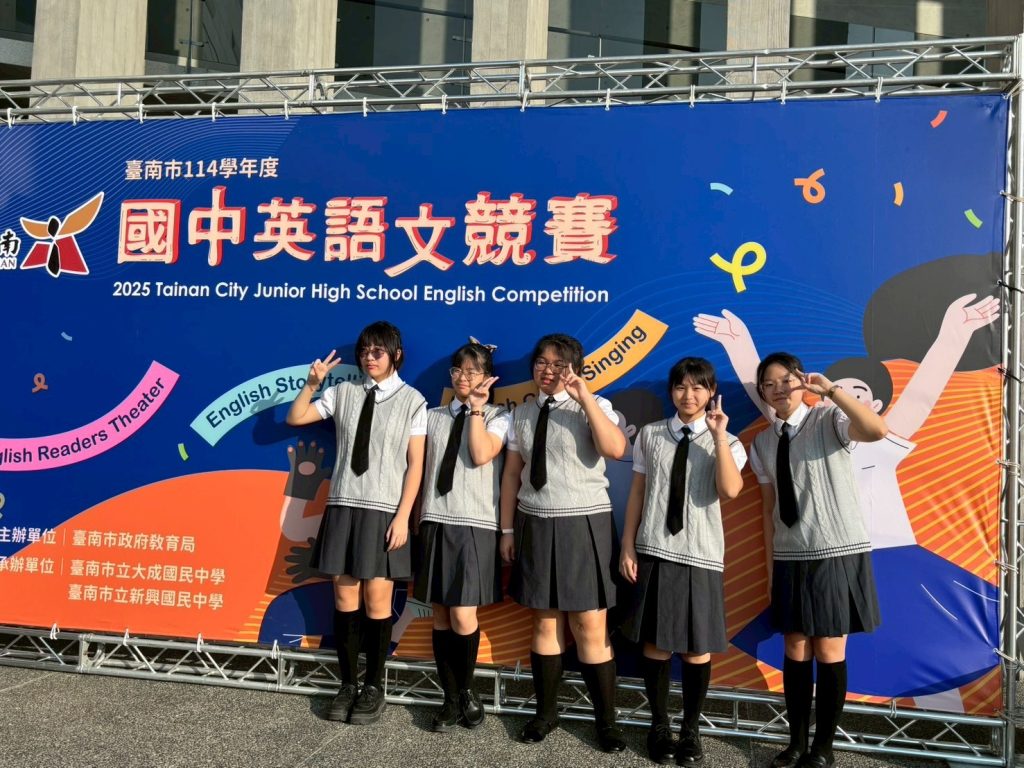 🎉恭賀!國中部 榮獲英語團唱比賽【優等】- 801黃○瑄、 801顏○甯、 807羅○晴 、808李○潔 、808陳○均Post author:nnkiehtn022Post published:2025-12-15Post category:國中部 / 榮譽榜114年度台南市英語文競賽榮獲英語團唱比賽【優等】國中部 – 801黃○瑄、 801顏○甯、 807羅○晴 、808李○潔 、808陳○均感謝指導老師Eunice老師、陳姿雯老師、蔣依錦老師。 Post Views: 161Read more articles上一篇文章🎉恭賀!國中部 908黃○燊-榮獲114英語說故事比賽【特優】下一篇文章115年全國中等學校運動會報名