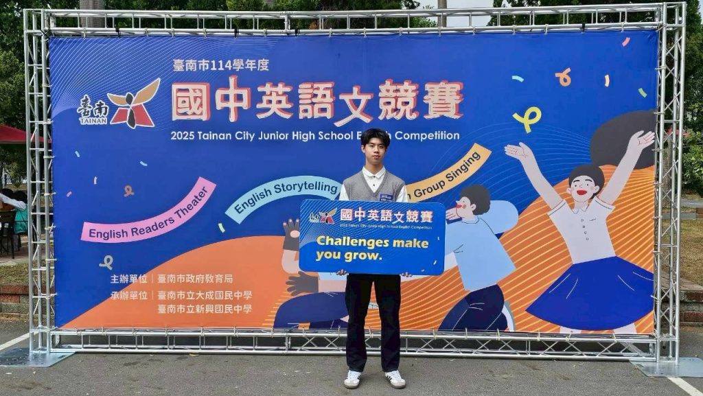 🎉恭賀!國中部 908黃○燊-榮獲114英語說故事比賽【特優】Post author:nnkiehtn022Post published:2025-12-15Post category:國中部 / 榮譽榜114年度台南市英語文競賽908黃○燊 同學-榮獲英語說故事比賽【特優】感謝: 洪昭怡老師、Alan老師指導。 Post Views: 140Read more articles上一篇文章2026第四十屆日本東京創新天才國際發明展下一篇文章🎉恭賀!國中部 榮獲英語團唱比賽【優等】- 801黃○瑄、 801顏○甯、 807羅○晴 、808李○潔 、808陳○均